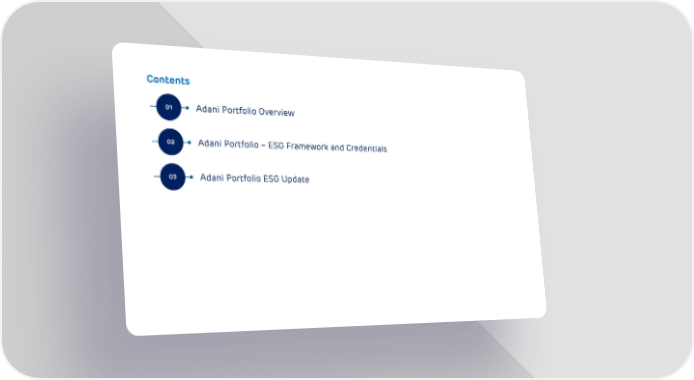 ESG Updates Page 1 Page 3STRICTLY CONFIDENTIAL STRICTLY CONFIDENTIAL Adani Portfolio Overview 01 02 Adani Portfolio – ESG Framework and Credentials Adani Portfolio ESG Update 03 Contents