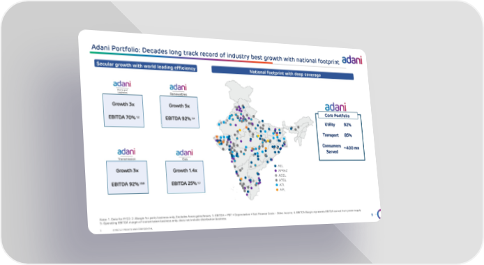 5 STRICTLY PRIVATE AND CONFIDENTIAL Adani Portfolio: Decades long track record of industry best growth with national footprint 5 Note: 1. Data for FY22; 2. Margin for ports business only, Excludes forex gains/losses; 3. EBITDA = PBT + Depreciation + Net Fin ance Costs – Other Income; 4. EBITDA Margin represents EBITDA earned from power supply 5. Operating EBITDA margin of transmission business only, does not include distribution business. Secular growth with world leading efficiency APSEZ ATL AEL APL ATGL AGEL National footprint with deep coverage Growth 3x EBITDA 70% 1,2 Growth 5x EBITDA 92% 1,4 Growth 1.4x EBITDA 25% 1,3 Growth 3x EBITDA 92% 1,3,5 Utility 92% Transport 85 % Consumers Served ~400 mn Core Portfolio